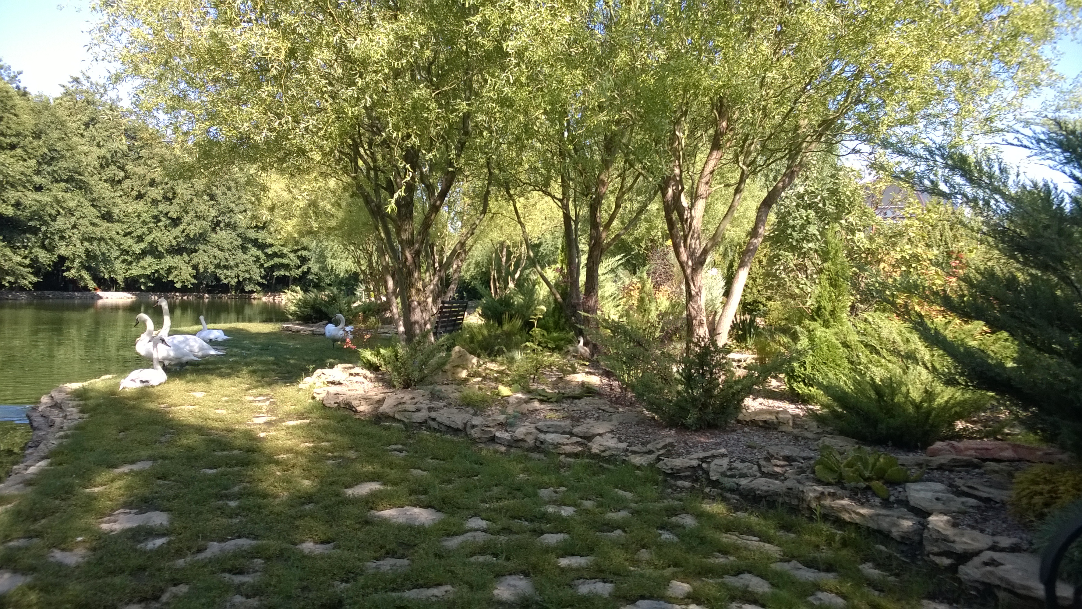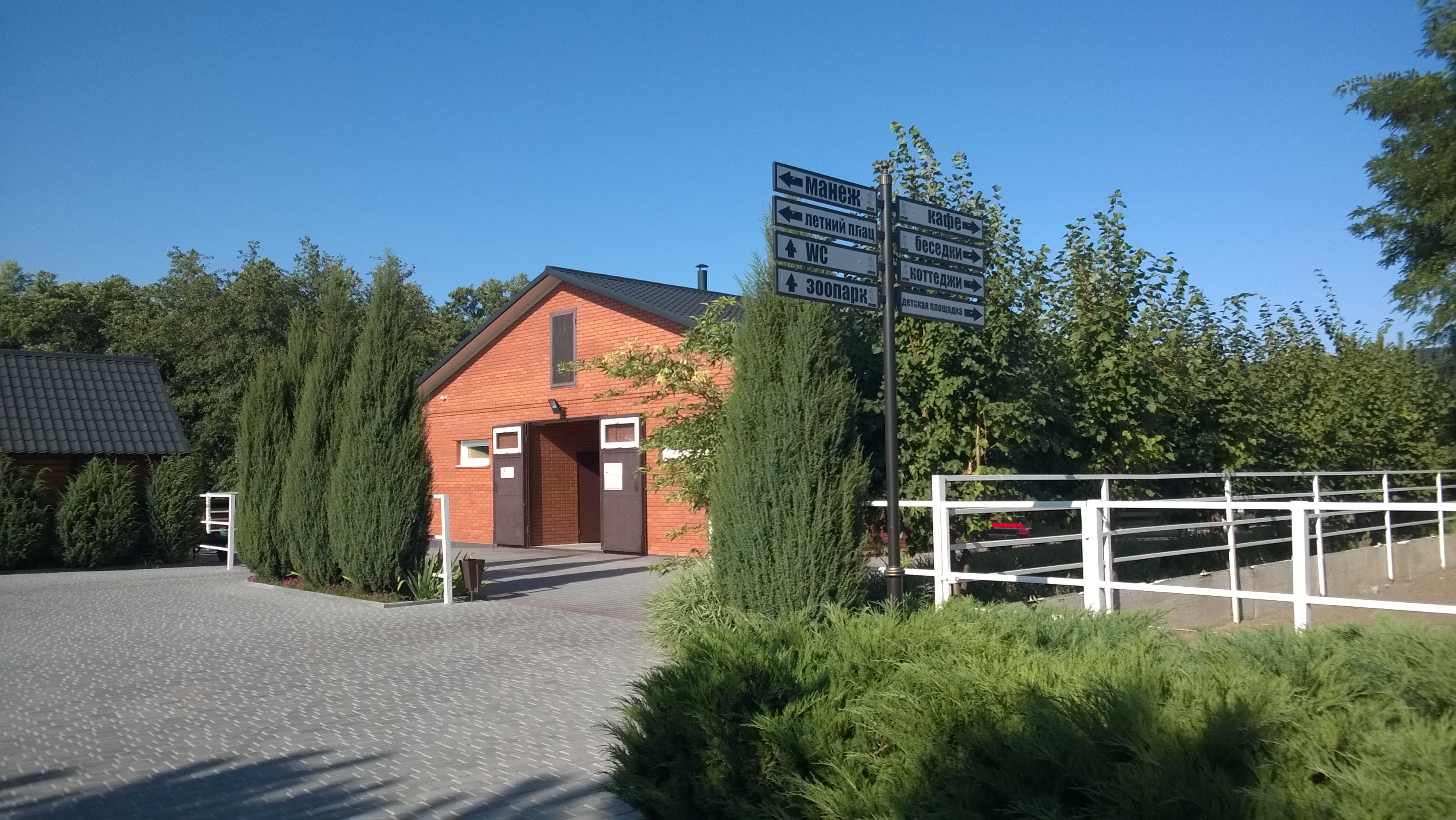 Любимая сделал подарок на ДР - повезла меня в конно-спортивную базу возле Херсона... таких цивильных конюшен я еще никогда не видел :) Плюс там есть мини-зоопарк, очень красивое озеро с лебедями, беседочки, мангальчики, качельки, т.е. можно просто арендовать беседочку, приехать толпой пожарить шашлычка, попить пива и т.д.